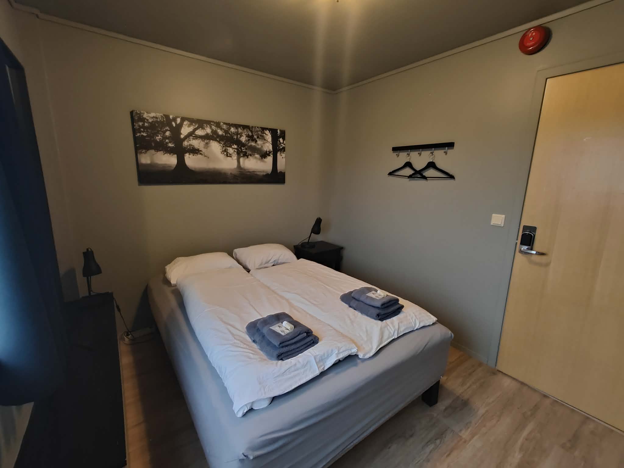 Rom nr 3, liten dobbeltseng (140cm) , har ikke eget bad, på gangen er det 2 toaletter, og 2 dusjer med toalett.